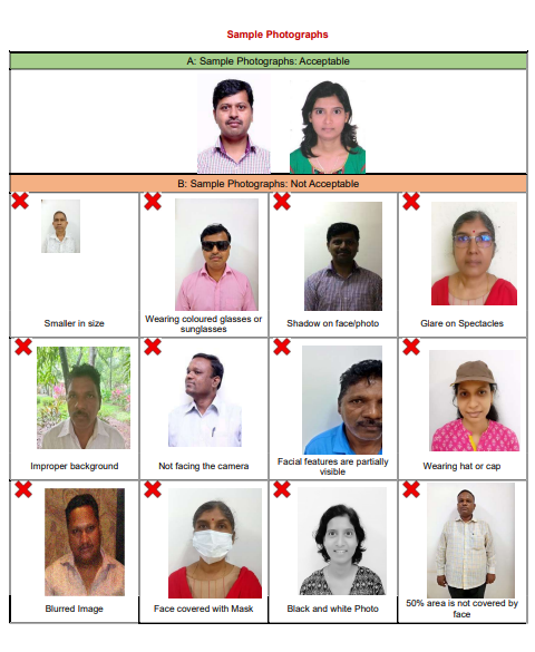 High-quality image of the candidate’s photograph and signature conforming to the specifications given in Section 3.4 (Photograph Requirements) and Section 3.5 (Signature Requirements), respectively Photographs must be in the range of 50 KB to 200 KB (3.5 cm width and 4.5 cm height).