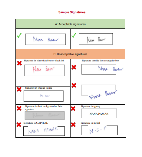 The signature must be in the range of 5 KB to 150 KB (2 cm height and 7 cm width).